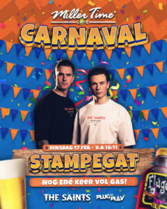 De dinsdag van Carnaval toveren wij de Miller Time om naar Stampegat, nog ené keer vol gas meej z’n alle. Met Resident DJ Stijn Aartse gaan we Carnaval maximaal afsluiten met een tandje harder – hierbij hebben wij The Saints uitgenodigd (de snelst groeiende en een van de grootste hardstijle acts van de moment) die hun acht om toveren naar The Schnitzelboys waarbij elke carnavals plaat in een hardstijl jasje terecht komt. Ze zijn niet alleen want ook de mannen uit Veldhoven, Plug ‘N Play zijn van de partij.